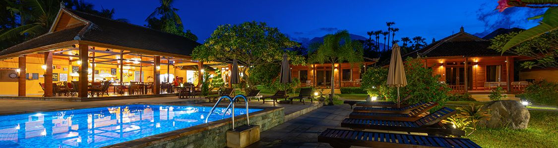 Das Restaurant und die Bar liegen so, dass Sie Speisen und Getränke mit direktem Blick auf das wunderschöne Meer von Bali genießen können. Unsere Menükarte kombiniert köstliche indonesische und internationale Gerichte, sowie eine große Auswahl an verschiedenen Getränken. Von morgens bis abends können Sie die verschiedensten Aktivitäten bei ABWonderdive wahrnehmen – und das nur wenige Schritte von Ihrer Villa entfernt. Der Resort-eigene Infinity-Pool misst 6 x 12 Meter und ist zwischen 1,2 und 3 Meter tief. Er bietet genügend Platz für Spaß und Spiele im Pool für Kinder und Erwachsene.